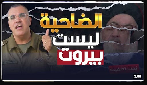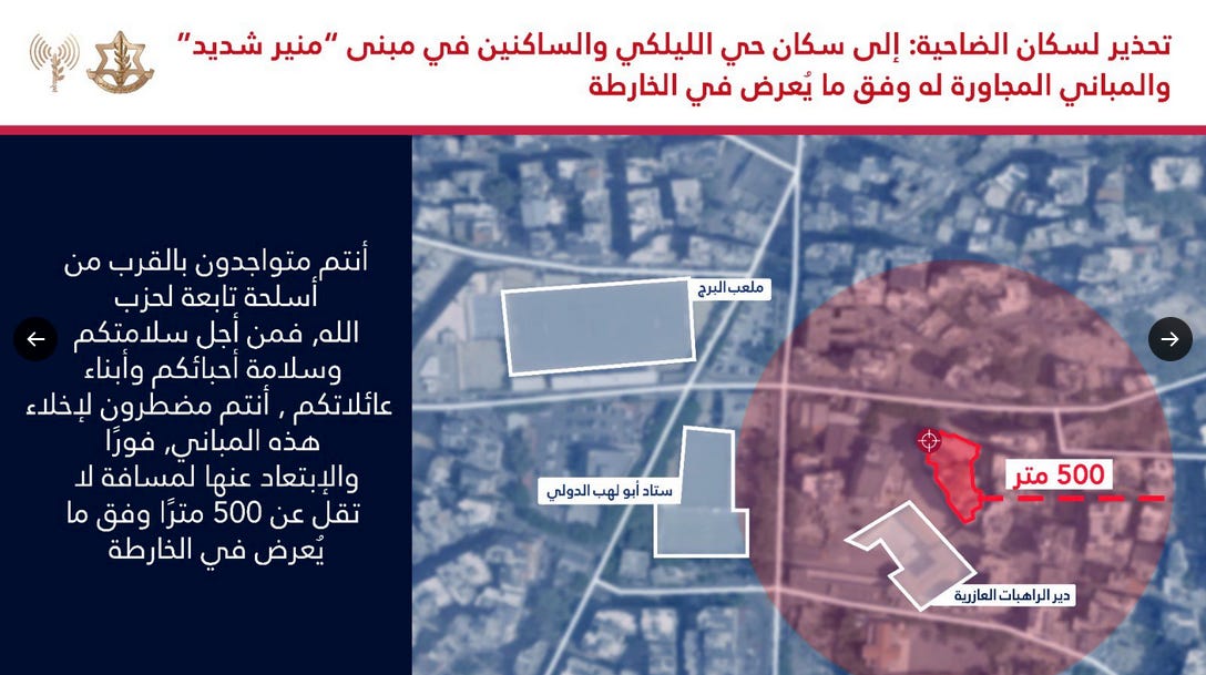 An hour or two after that, they ordered two sites in Dahieh evacuated. So they told us after not telling us. They decide when to let us know and let us know, maybe. Repeat.