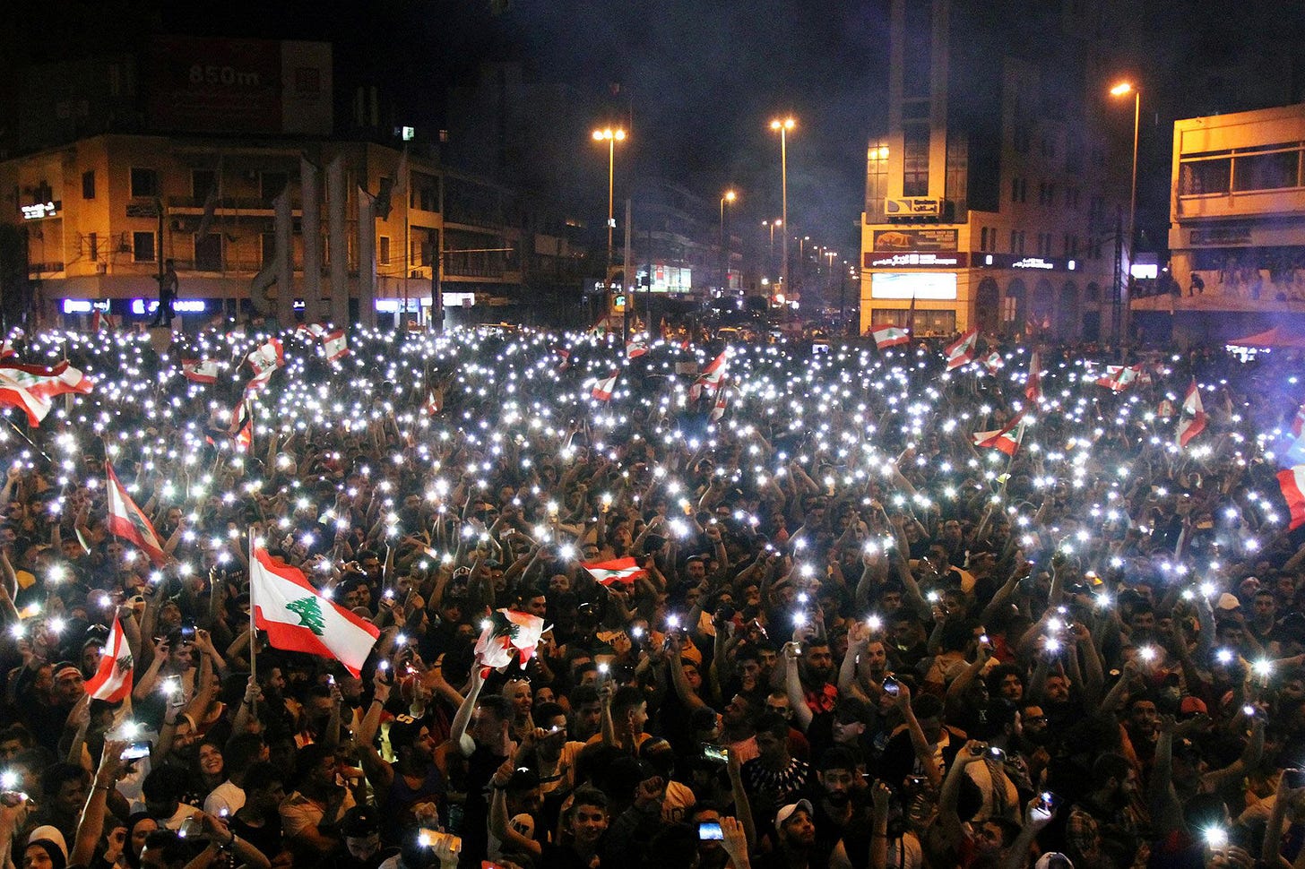 The movement started with a regular act of protest: the shutting down of roads through burning tires. Usually seen as an illegitimate way to voice concerns, practiced by the lower class, the burning of tires served, this time, as a clarion call for a total mobilization across the country. Most strikingly, this included areas presumed to be under the influence of Hezbollah and their allies Amal. Even there, protests erupted and party symbols such as arches and flags used to demarcate party territory were taken down. Various party offices were also vandalized. The hegemony of parties that had secured their separate cantons was starting to weaken.